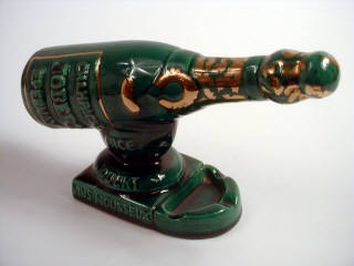 H. FARAU (FRANCE) Cendrier en forme de bouteille de champagne vert & doré
