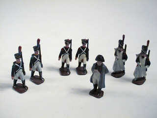 FIGURINES DIVERSES Ensemble de 6 soldats du premier Empire bleu, blanc & rouge