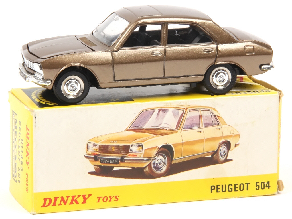 DINKY TOYS (FRANCE) 1452 PEUGEOT 504 (made in SPAIN) bronze métal