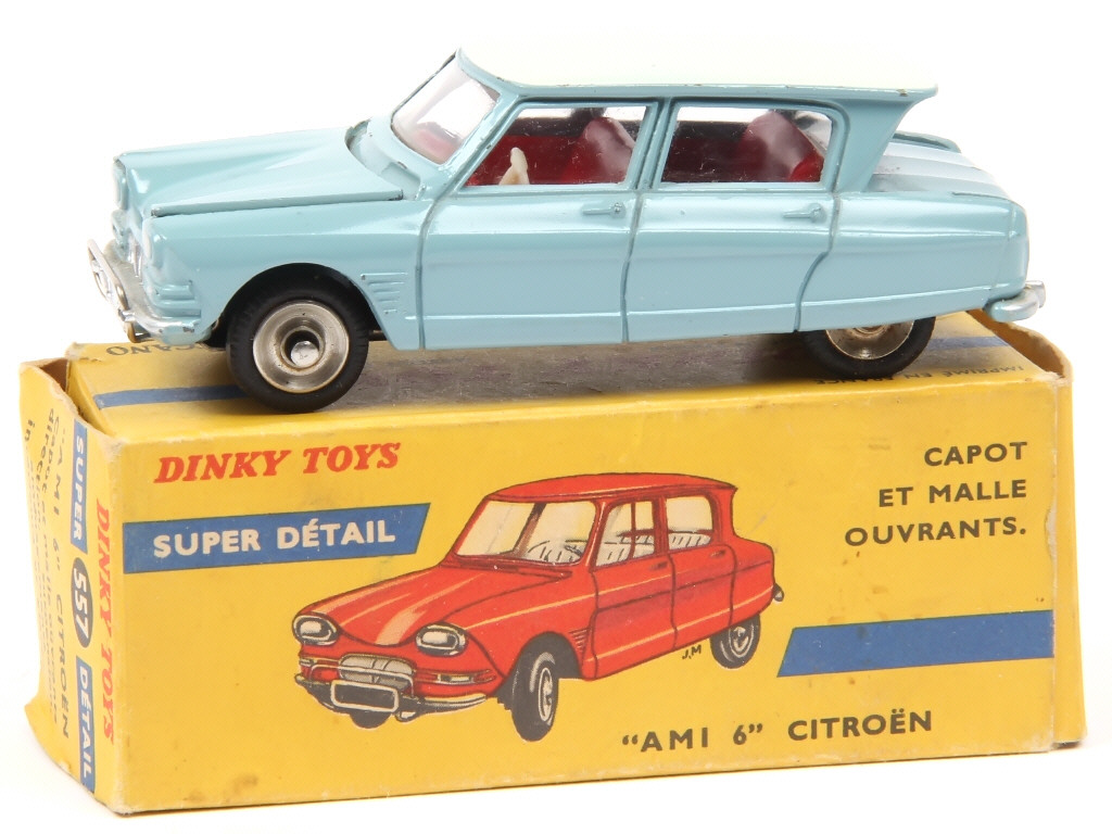 DINKY TOYS (FRANCE) 557 CITROËN AMI 6 (version avec roue de secours sous le capot) gris bleu, toit blanc