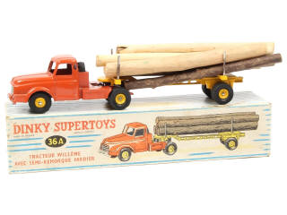DINKY TOYS (FRANCE) 36A WILLEME Fardier (version avec jantes convexes & remorque ajourée) orange & jaune