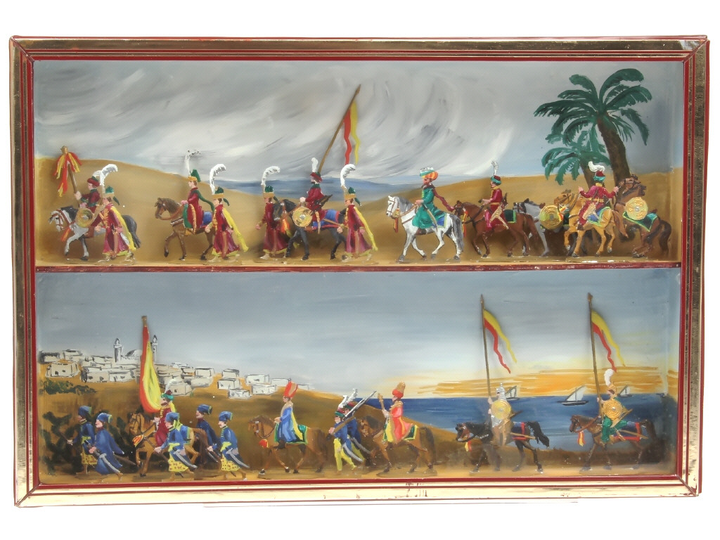 dimensions : 34x22x4 cm - contient : 22 soldats turcs avec montures en plat d'étain peints