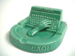 OBJETS PUBLICITAIRES Cendrier représentant une machine à écrire & une main vert