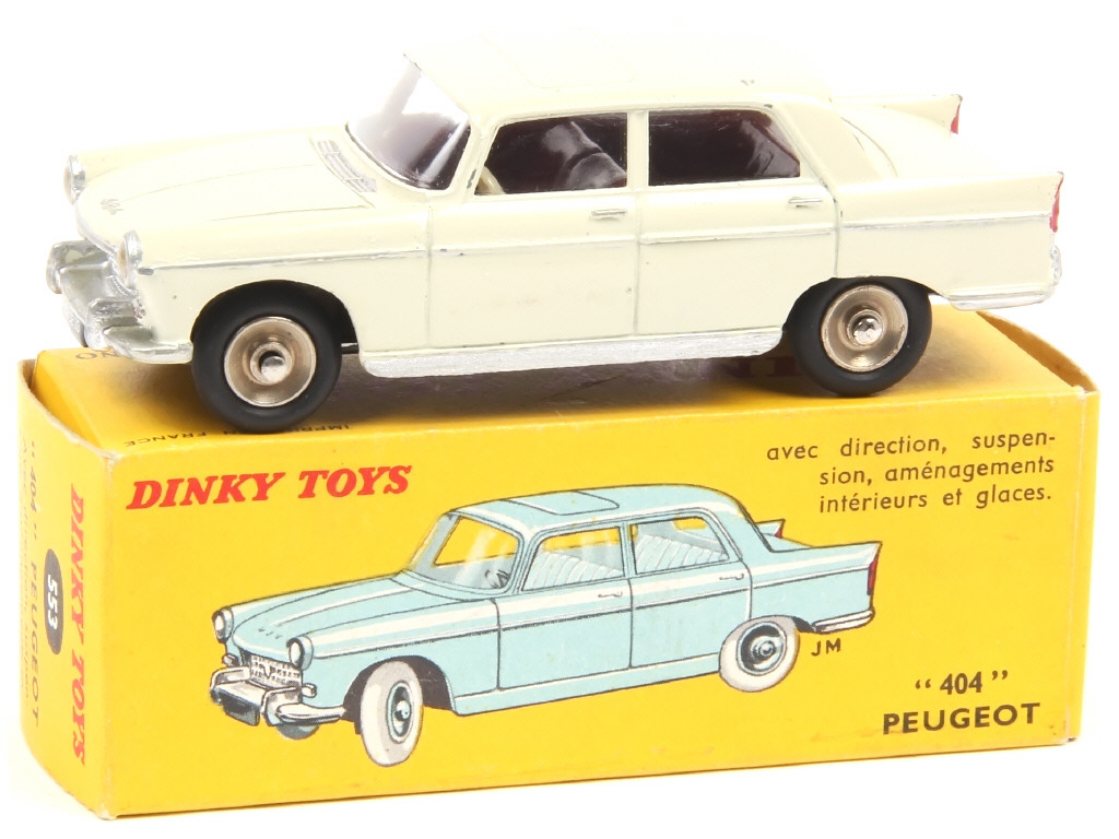 DINKY TOYS (FRANCE) 553 PEUGEOT 404 (premier moule) crème, intérieur grenat foncé