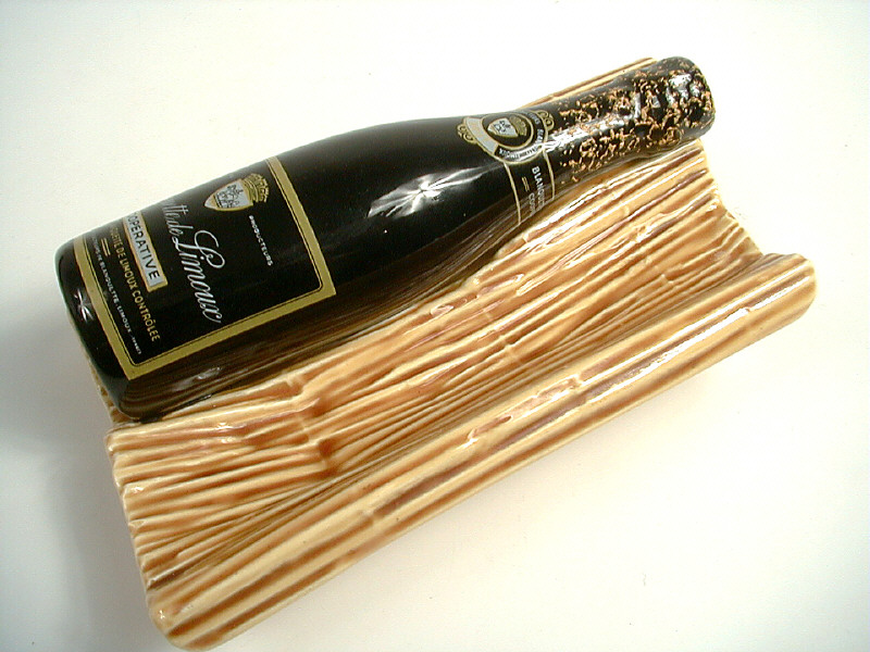 longueur 19 cm - en céramique - publicité 'BLANQUETTE DE LIMOUX' - une petite fêlure sur le socle