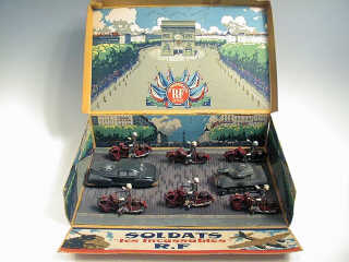 ce SUPERBE coffret illustré (-b) comprend 6 motards de la police militaire (A-), 1 char (A) & 1 limousine avec l'étoile de l'armée américaine sur le capot (C) - les illustrations sont signées de A. BOUCHERAT - ENSEMBLE DANS UN ETAT EXCEPTIONNEL !!!
