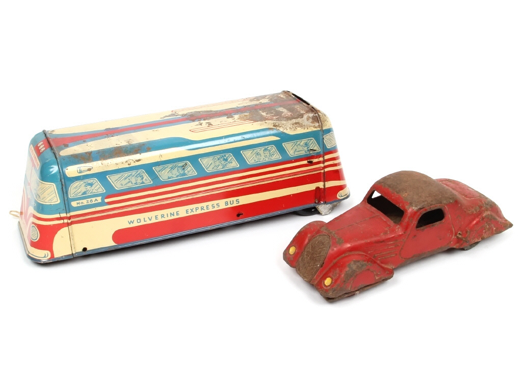 on y retrouve les marques : JEP (moteur à ressort fonctionne poussivement) & WOLVERINE - importantes traces d'oxydation - légers manques & 2 roues repeintes