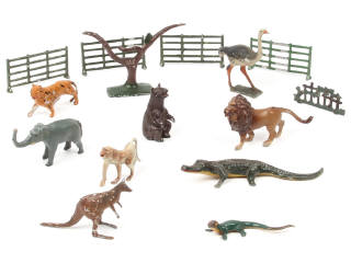 G.M. (FRANCE) Ensemble de 9 animaux sauvages, 5 barrières & un arbre