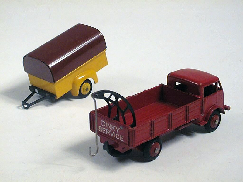DINKY TOYS (FRANCE) 25T Remorque bâchée à 2 roues jaune, jantes identiques & bâche marron