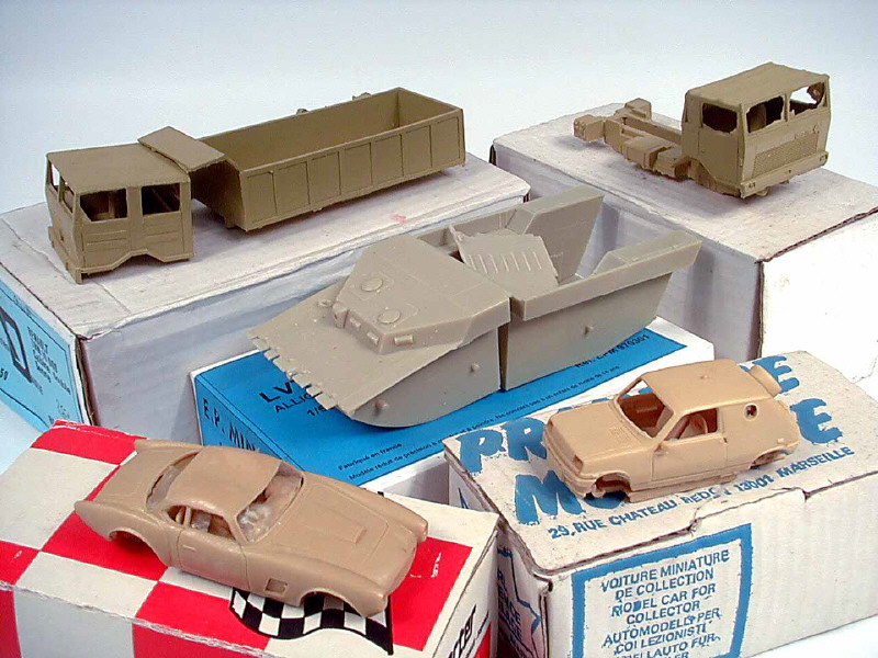 miniatures reproduisant les marques : RENAULT, BERLIET, FERRARI & LVT - on y retrouve les marques PROVENCE MOULAGE, STARTER, MD, DELTA & EP MINIATURES - sans garantie sur la présence de toutes les pièces