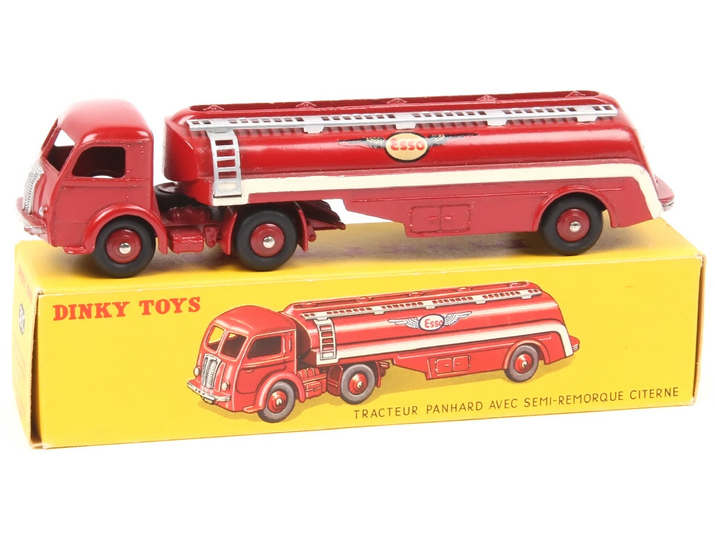 DINKY TOYS (FRANCE) 32C PANHARD Semi-remorque citerne 'ESSO' (version avec jantes convexes) rouge (décalques 'petites ailes')