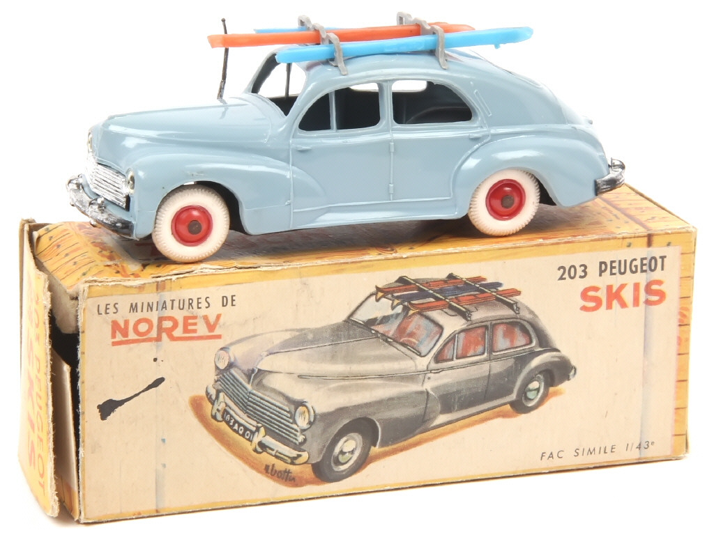 NOREV (FRANCE) 21 PEUGEOT 203 avec skis gris bleu