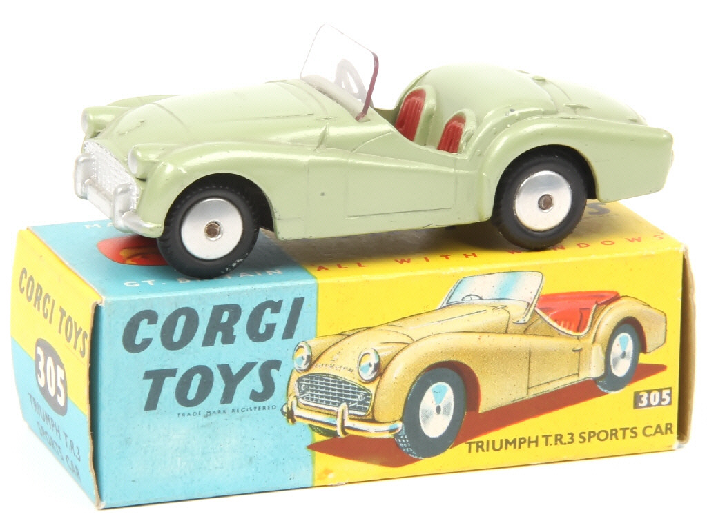 CORGI TOYS (GB) 305 TRIUMPH TR3 vert tilleul métal, sièges tomate