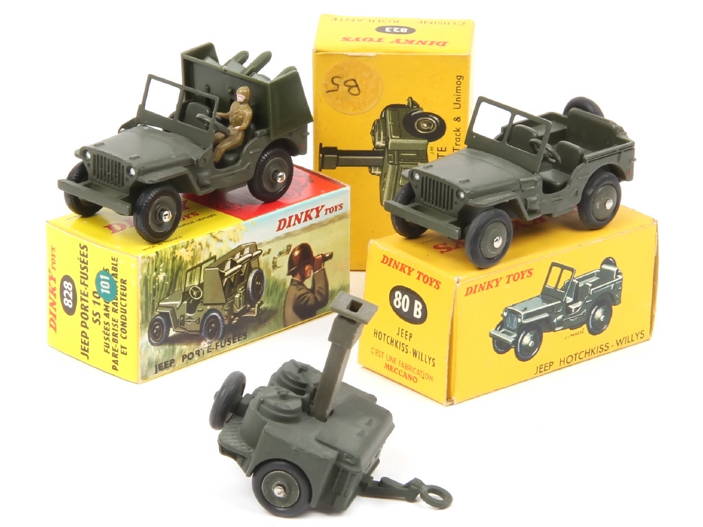 DINKY TOYS (FRANCE) 828 JEEP WILLYS Porte-fusées SS 10 kaki