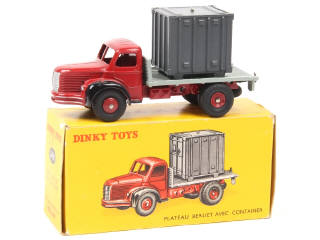 DINKY TOYS (FRANCE) 34B BERLIET Plateau avec container (version avec goupille) rouge, plateau gris clair