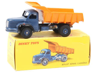 DINKY TOYS (FRANCE) 580 BERLIET Benne carrière MARREL (version avec jantes concaves) bleu foncé & orange
