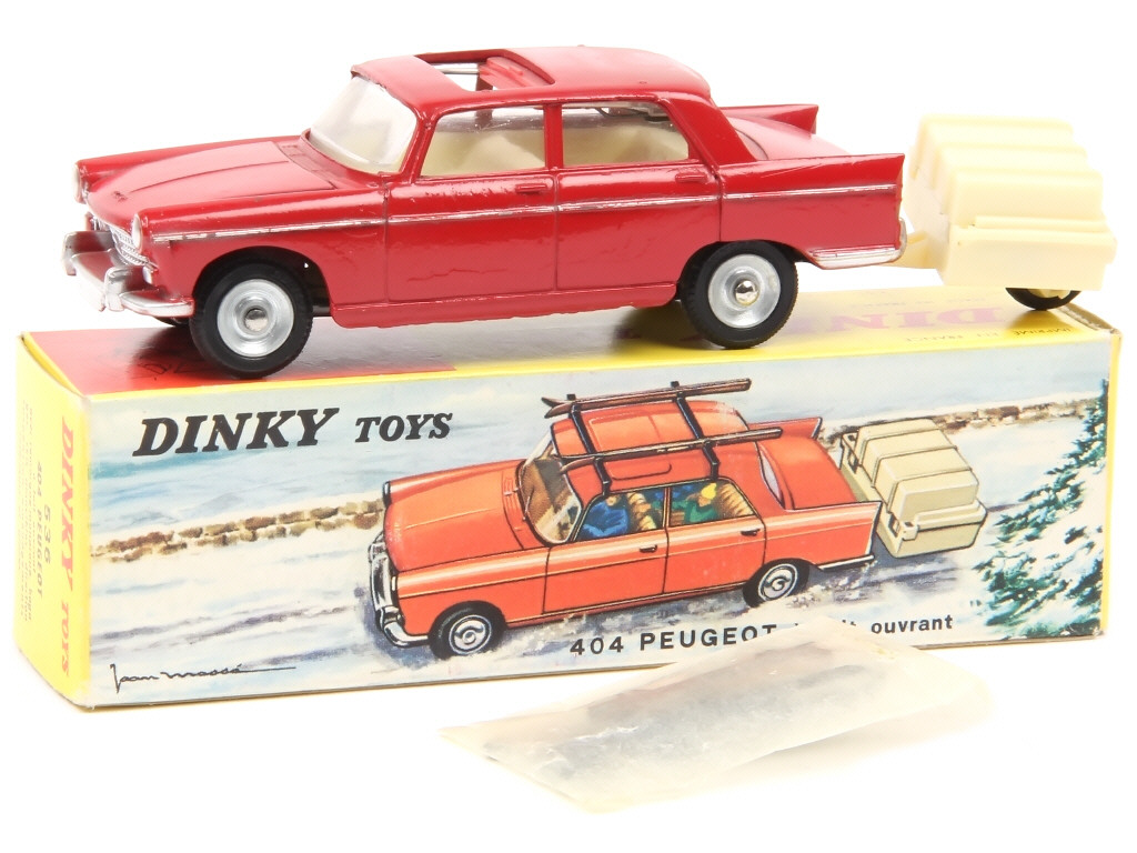 DINKY TOYS (FRANCE) 536 PEUGEOT 404 avec remorque monoroue (skis noirs) rouge