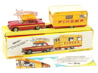 DINKY TOYS (FRANCE) 882 PEUGEOT 404 & Caravane 'PINDER' jaune, rouge & blanc