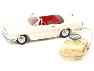 longueur 27,5 cm - avec moteur à pile, ventilateur de moteur (fonctionnent), direction (à revoir), capot & coffre ouvrants - retouches - avec accessoires manquants (dont hard-top)