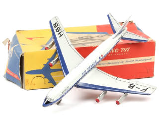 envergure 30,5 cm - avec moteurs à friction & bruiteur (fonctionnent) - quelques petits frottements & légères traces d'oxydation par endroits (principalement sur les ailes) - roues salies - une dérive très légèrement déformée