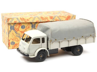 longueur 41 cm - version luxe de 1955 avec moteur à pile & phares électriques (fonctionnent), essieu arrière jumelé, direction & marche avant/arrière - bâche très légèrement tachée - quelques petits accrocs & légères taches sur la boîte par endroits (avec bon de contrôle) - EN UN MOT SUPERBE !