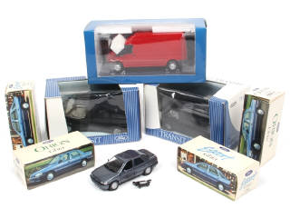 comprend les modèles : TRANSIT, ORION & ESCORT GHIA - on y retrouve les marques : SHABAK (6 exemplaires) & MINICHAMPS - 2 blisters légèrement abîmés