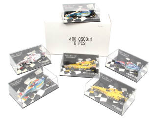 avec suremballage cartonné 6 pièces - comprend les modèles : HART, FORD, PEUGEOT & MUGEN-HONDA - on y joint une SUPER AGURI de la marque - une boite avec quelques rayures