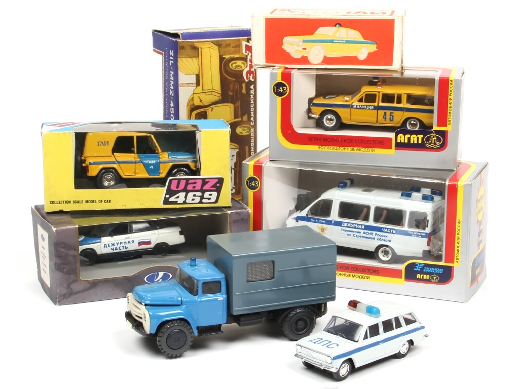 2 modèles en série limitée - comprend notamment les modèles : ZIL, VOLGA, LADA & UAZ - un exemplaire avec gyrophare à refixer - on y retrouve notamment la marque AGAT - quelques boites en état 'c'