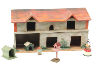 dimensions : 45x15x 23 cm - quelques petites fêlures & légères parties vermoulues par endroits - on y joint 5 accessoires (états de 'D' à 'R') dont certains non d'origine