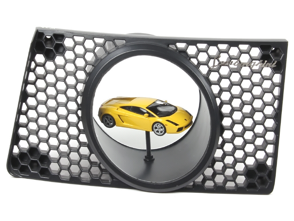 exemplaire présenté à l'intérieur d'une garniture d'une sortie d'échappement du véritable modèle (inscriptions LAMBORGHINI légèrement déformées) - un pneu coupé