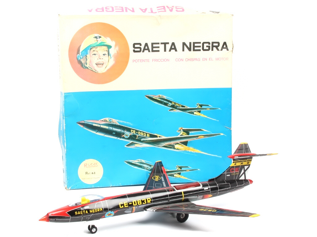 RICO (ESPAGNE) 63 Avion de chasse 'SAETA NEGRA' en tôle lithographiée noir, jaune & rouge