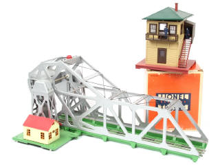 systèmes électriques non testés - écartement '0' - comprend : un pont mobile & un poste d'aiguillages (en boîte état 'b' - exemplaires légèrement poussiéreux