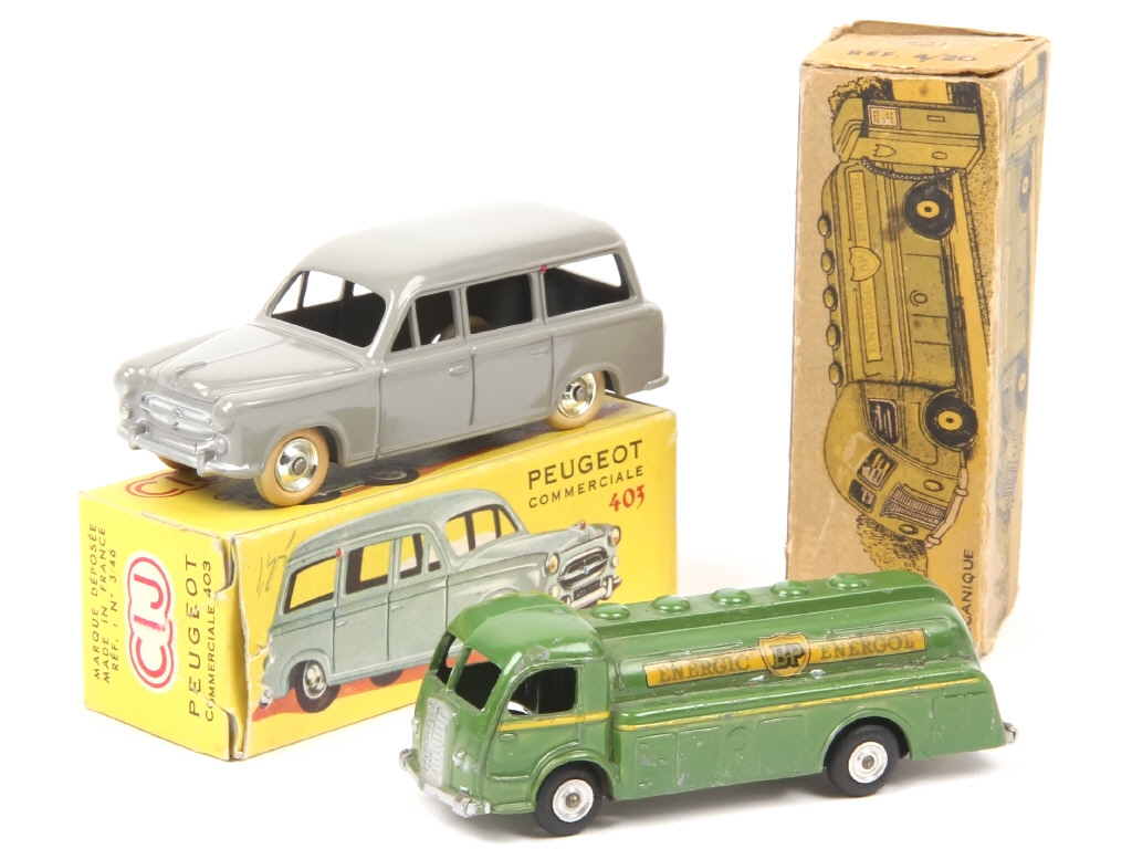 comprend : PEUGEOT 403 commerciale (état 'A-.c' - version sans vitres - teinte RARE ! - certains pneus endommagés) & PANHARD citerne 'ENERGIC BP ENERGOL' (état 'D.d' - boite de la version mécanique)