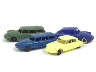 échelle 1/48ème - comprend les modèles : ID19 break 'BONUX' (marquage en relief sur le toit, 2 exemplaires différents) & DS19 (2 exemplaires différents dont un avec marquage 'BONUS' en relief sur le plancher)