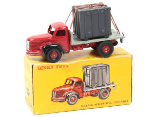 DINKY TOYS (FRANCE) 34B BERLIET Plateau avec container (version avec anneau moulé) rouge, plateau gris clair