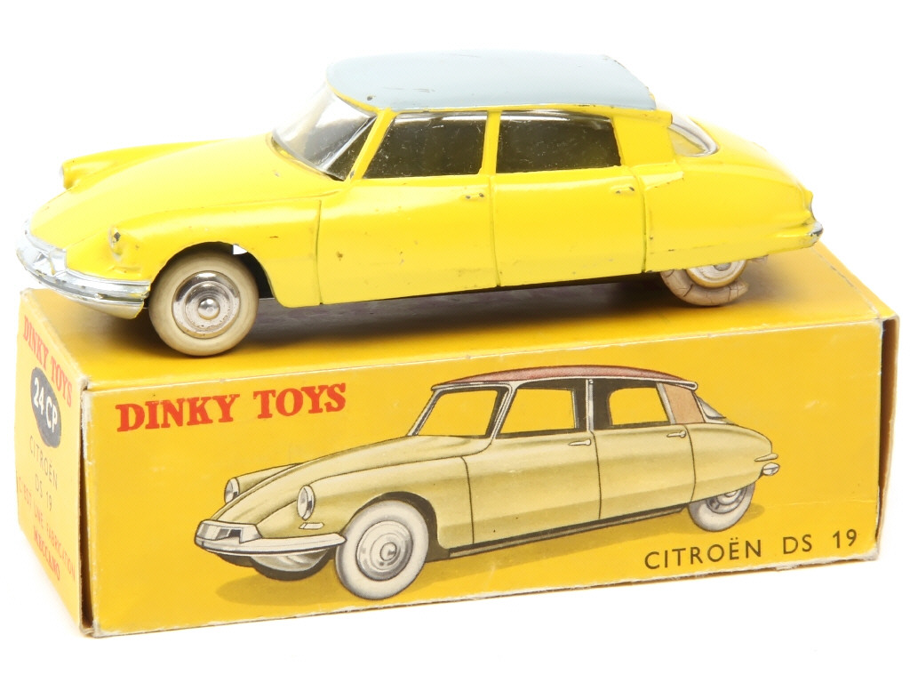 DINKY TOYS (FRANCE) 24CP CITROËN DS 19 (version avec vitres & jantes convexes) jaune citron, toit gris clair
