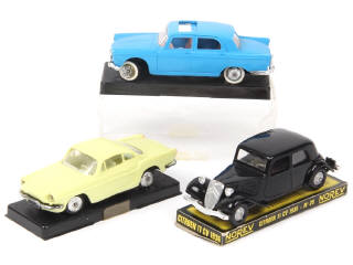 comprend : CITROËN TRACTION, PEUGEOT 404 & RENAULT FLORIDE - jantes légèrement fondues (sur 2 modèles) avec petites déformations des carrosseries - traces de parties fondues sur 2 socles de boîtes