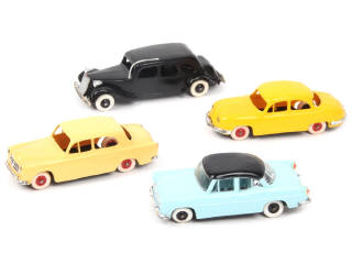 comprend : CITROËN TRACTION (version mécanique, fonctionne), PANHARD DYNA, SIMCA VERSAILLES (avec plancher de la version mécanique, fêlures sur le pare-brise) & PEUGEOT 403 - carrosseries légèrement déformées avec jantes plus ou moins fondues