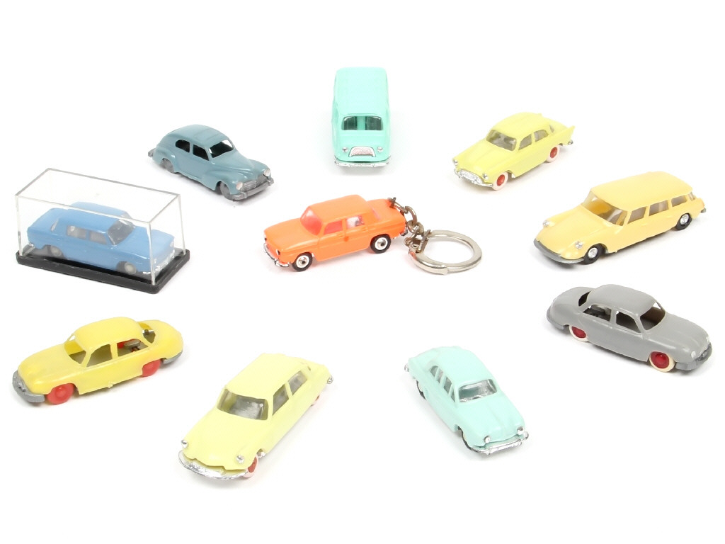 échelle 1/86ème - états de 'A' à 'B' - miniatures reproduisant les modèles : PANHARD, RENAULT, PEUGEOT, SIMCA & CITROËN - on y retrouve les marques : JOUEF, NOREV & EKO