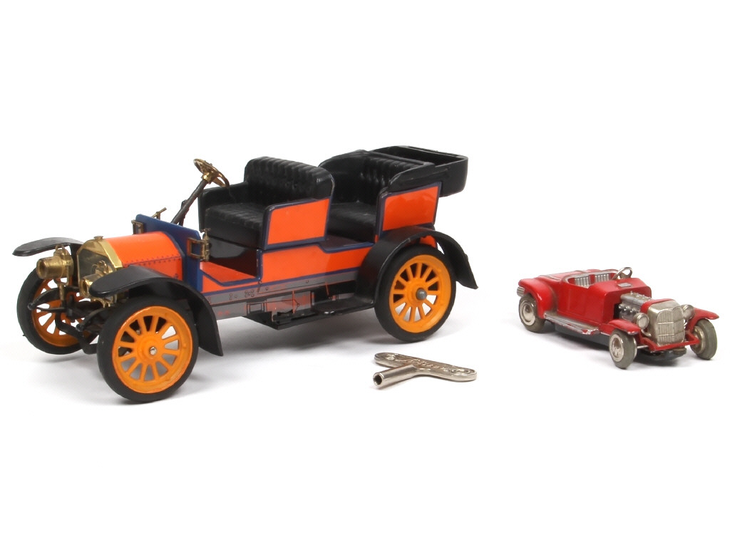 moteurs à clef à revoir - miniatures reproduisant les modèles : MERCEDES SIMPLEX & FORD HOTROD - avec manques & parties cassées - pneus plus ou moins endommagés