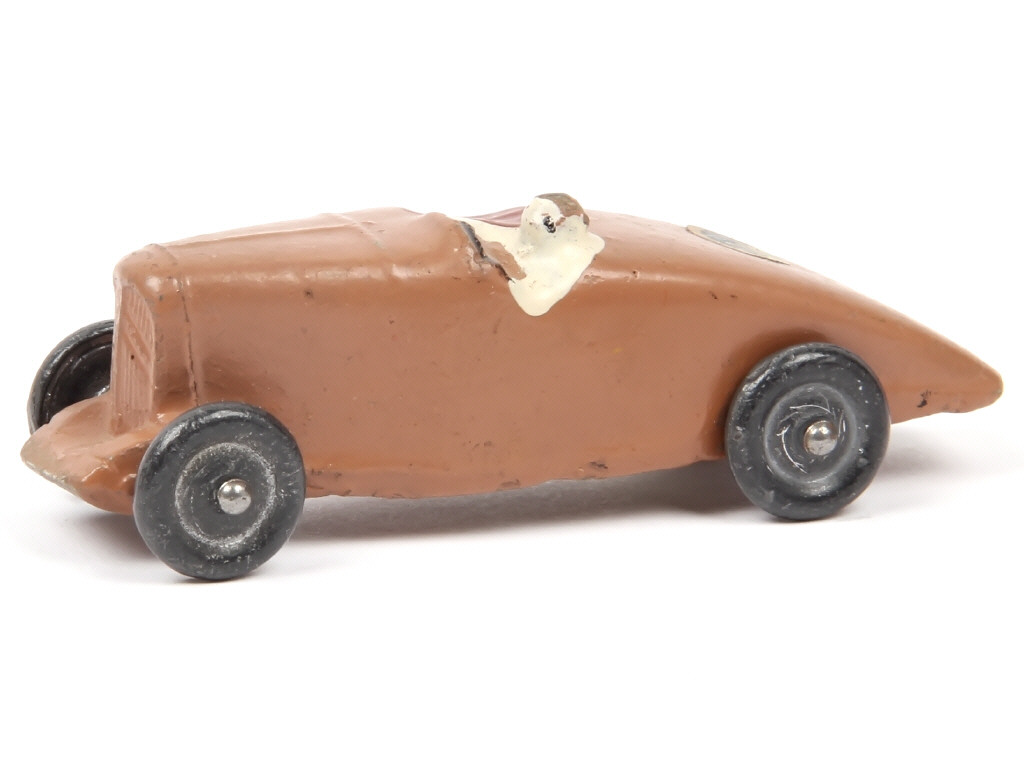 réalisation en plâtre & farine & roues en métal - longueur : 8,5 cm - un éclat sur le casque du pilote
