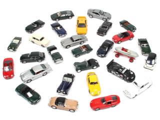 miniatures reproduisant notamment les modèles : ASTON MARTIN, MG, BMW, ALFA ROMEO & SMART - on y retrouve notamment les marques : VITESSE, DEL PRADO, UNIVERSAL HOBBIES, SCHUCO & EXEM - quelques petites parties cassées & d'autres manquantes