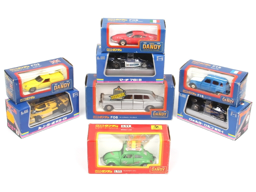 miniatures reproduisant notamment les modèles : RENAULT, ROLLS ROYCE & VOLKSWAGEN - on y retrouve les marques : TOMICA & EIDAI - quelques accrocs sur certaines boîtes