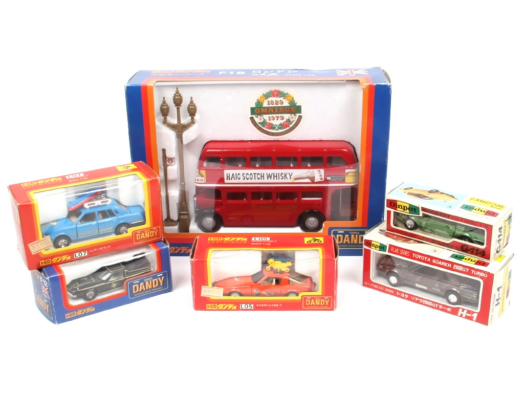 miniatures reproduisant notamment les modèles : NISSAN, MAZDA & TOYOTA - on y retrouve les marques : TOMICA & YONEZAWA - quelques boîtes en état 'c'
