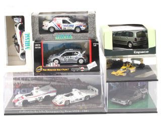 comprend les modèles : PEUGEOT (2 exemplaires différents), FORD, RENAULT (2 exemplaires différents), DELOREAN & PORSCHE (2 exemplaires différents) - on y retrouve les marques : VITESSE & REPLICAR
