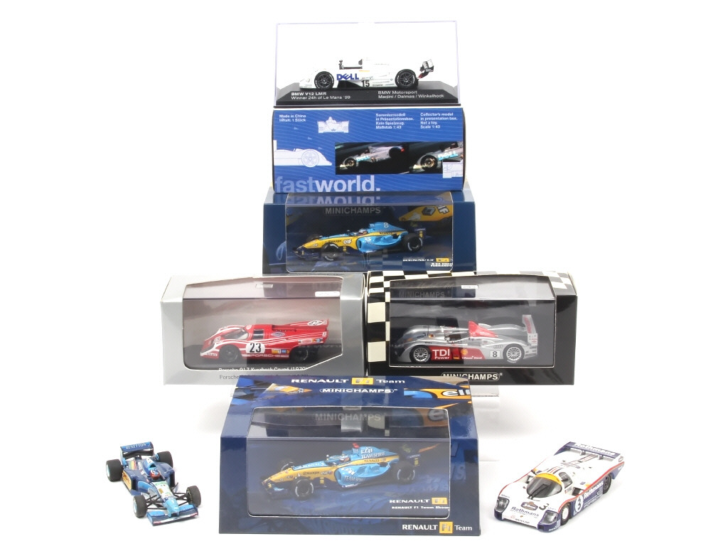 comprend les modèles : RENAULT, PORSCHE (2 modèles différents), BENETTON RENAULT, AUDI & BMW - 2 modèles sans boîte