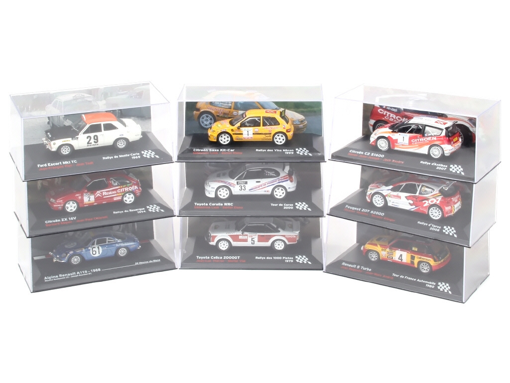 comprend les modèles : TOYOTA (2 exemplaires différents), RENAULT (2 exemplaires différents), CITROEN (3 exemplaires différents), PEUGEOT & FORD