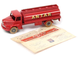 pneus jaunis avec chemin de ronde ternie - avec carton publicitaire 'ANTAR PETROLES DE L'ATLANTIQUE' indiquant que le modèle ci-présent a été offert le 15 février 1963 au chauffeur-livreur du dépôt de la filiale de Strasbourg pour ses bons & loyaux services
