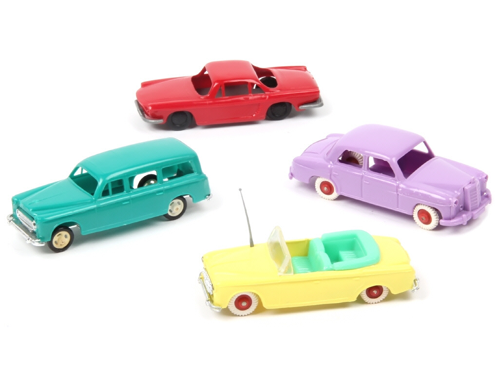 comprend : PEUGEOT 403 (2 exemplaires différents) & MERCEDES 220 SE (avec marquage 'BONUX') - on y joint une RENAULT FLORIDE de la marque ECF