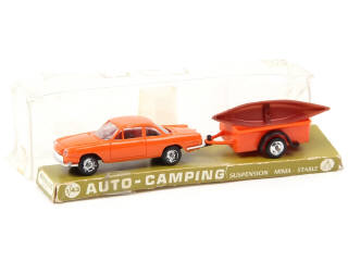 contient : SIATA 1500 TS (jantes légèrement fondues) & une remorque à un essieu avec un canoë - déformation de la boîte